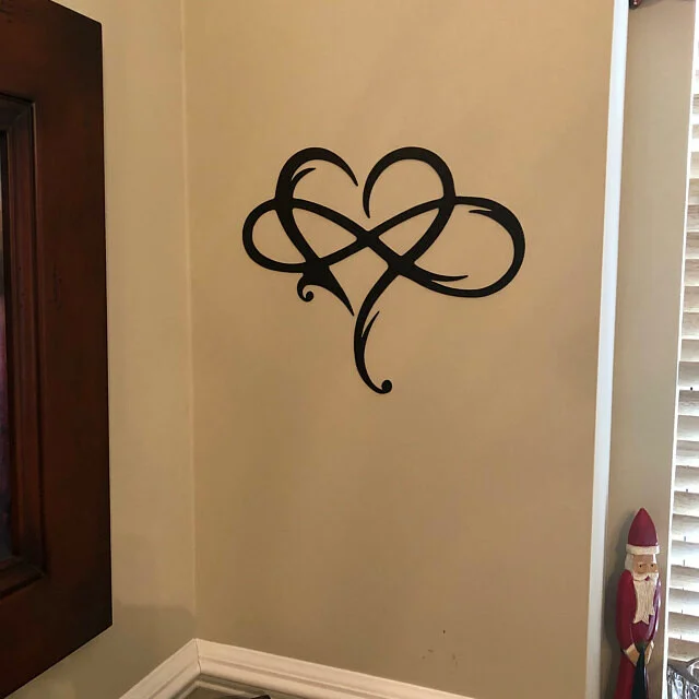 💞Art mural en métal signe infini. Ce symbole sans fin unique et amusant entrelacé avec un cœur est un excellent cadeau pour les fiançailles, les mariages, les anniversaires, la Saint-Valentin ou Noël. Excellent ajout de décoration d'amour à une chambre ou à un mur de galerie familiale.