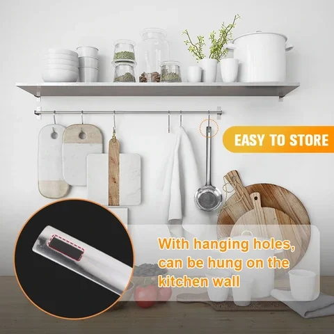 • L'extrémité de la poignée est conçue avec un trou de suspension, qui peut être accroché au mur de la cuisine, ce qui est facile à organiser et ne prend pas d'espace supplémentaire.