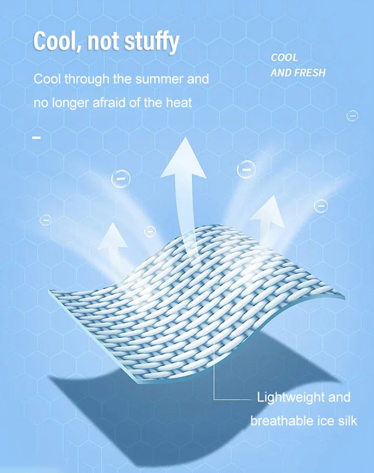 ✔️ Tissu léger Ice silk - doux au toucher. Aucune irritation.