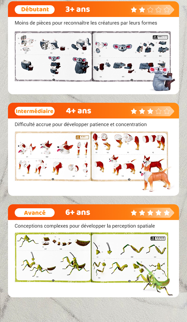 Jouets à assembler pour enfants sur le thème des insectes et des animaux