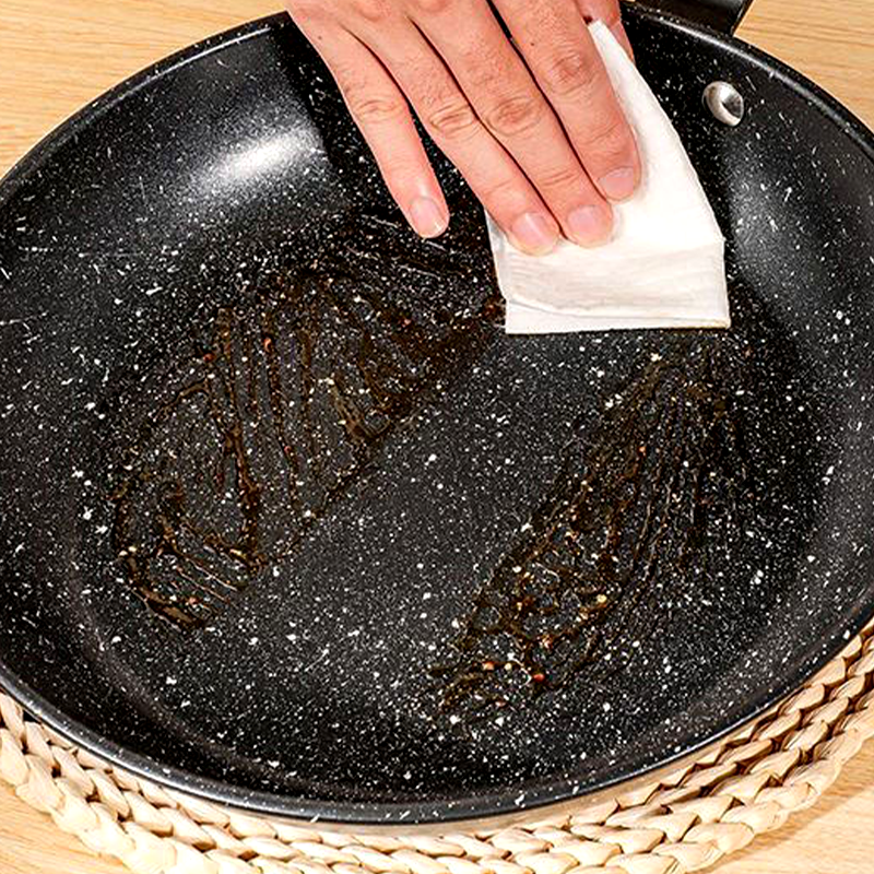 REVÊTEMENT ANTIADHÉSIF DURABLE : Conçue en fer raffiné de qualité alimentaire, associée à un revêtement antiadhésif résistant. Idéale pour une cuisson avec peu d’huile, elle se nettoie facilement après chaque utilisation, même en cas d’usage quotidien prolongé.