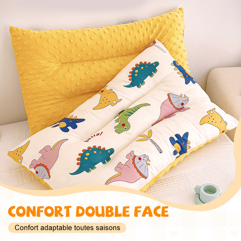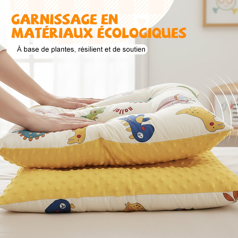 GARNISSAGE PREMIUM : Rempli de tissu à base de plantes, cet oreiller offre une résilience et une douceur supérieures. Il conserve sa forme moelleuse au fil du temps, offrant un soutien constant et doux pour la tête et le cou de votre enfant.