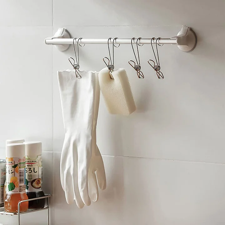 Il s'agit d'un clip universel ; il convient pour suspendre les gants en caoutchouc et les éponges dans la cuisine et la serviette de bain dans la salle de bains. Le clip en acier inoxydable est doté d'un crochet qui peut être accroché à la barre transversale. Vous pouvez suspendre certains articles que vous ne voulez pas stocker sur le bureau. Ce sera propre et vous gagnerez de l'espace.