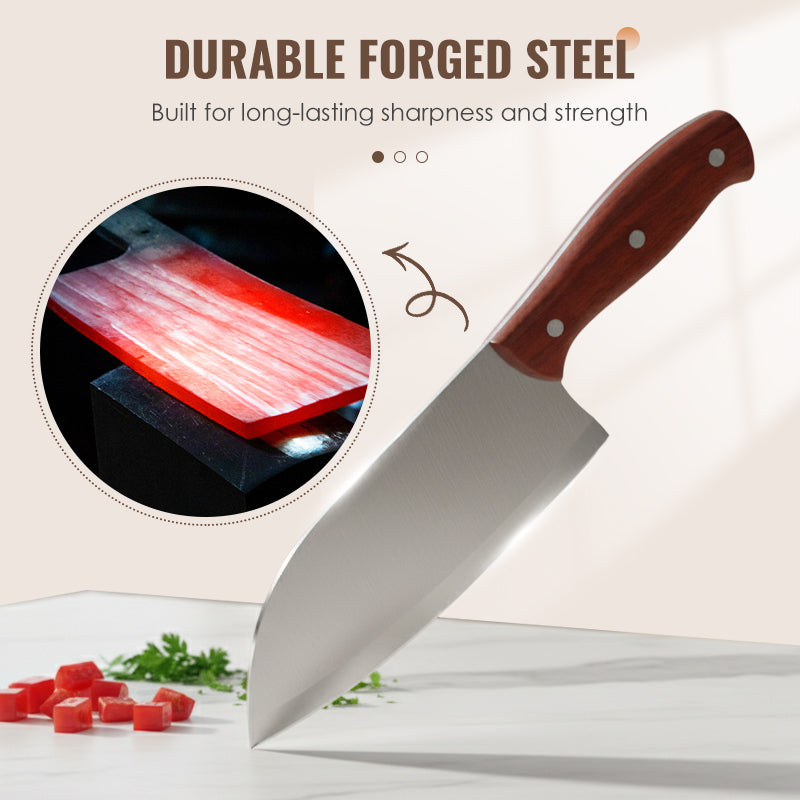 ACIER HAUTE QUALITÉ FORGÉ : Conçue grâce au forgeage répété d'acier premium, cette lame offre une dureté exceptionnelle et une rétention du tranchant prolongée. Elle reste ainsi affûtée plus longtemps, pour une performance fiable dans toutes vos tâches de découpe quotidiennes.
