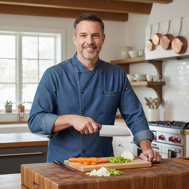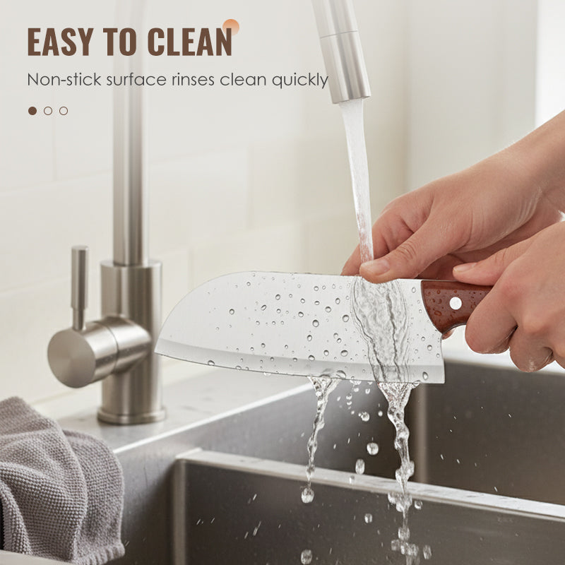 FACILE À NETTOYER : La finition brossée élégante de la lame n'est pas qu'esthétique ; elle réduit l'adhérence des aliments. Le nettoyage en est incroyablement facilité – un simple rinçage suffit souvent pour l'entretien.