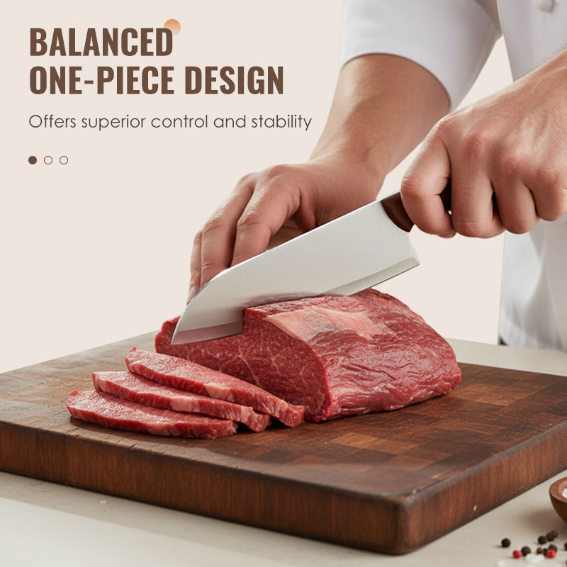 CONSTRUCTION MONOBLOC : Le design seamless de la lame au manche élimine les points faibles, prévient la casse et renforce la durabilité. Cette construction solide assure un équilibre et un contrôle supérieurs, rendant la découpe plus sûre et plus efficace.