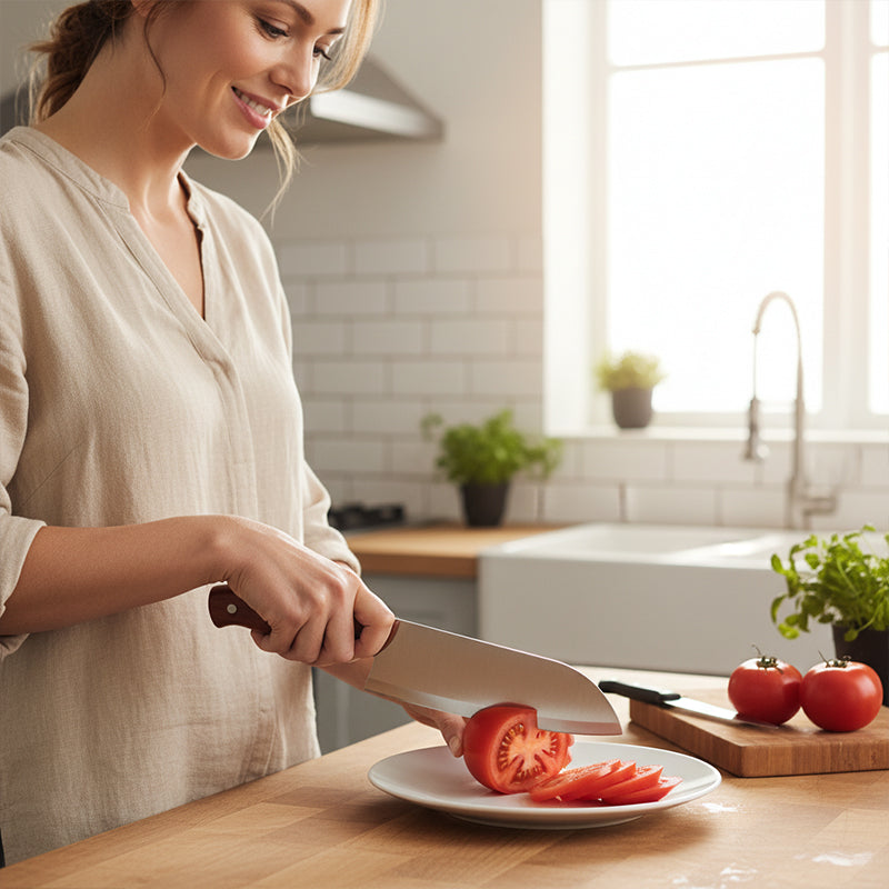 LAME EXTÊMEMENT AFFÛTÉE : Tranchez sans effort viandes, légumes et fruits avec précision. Son tranchant fin assure des coupes nettes, préservant la texture et la fraîcheur de vos ingrédients pour des plats plus beaux et savoureux.