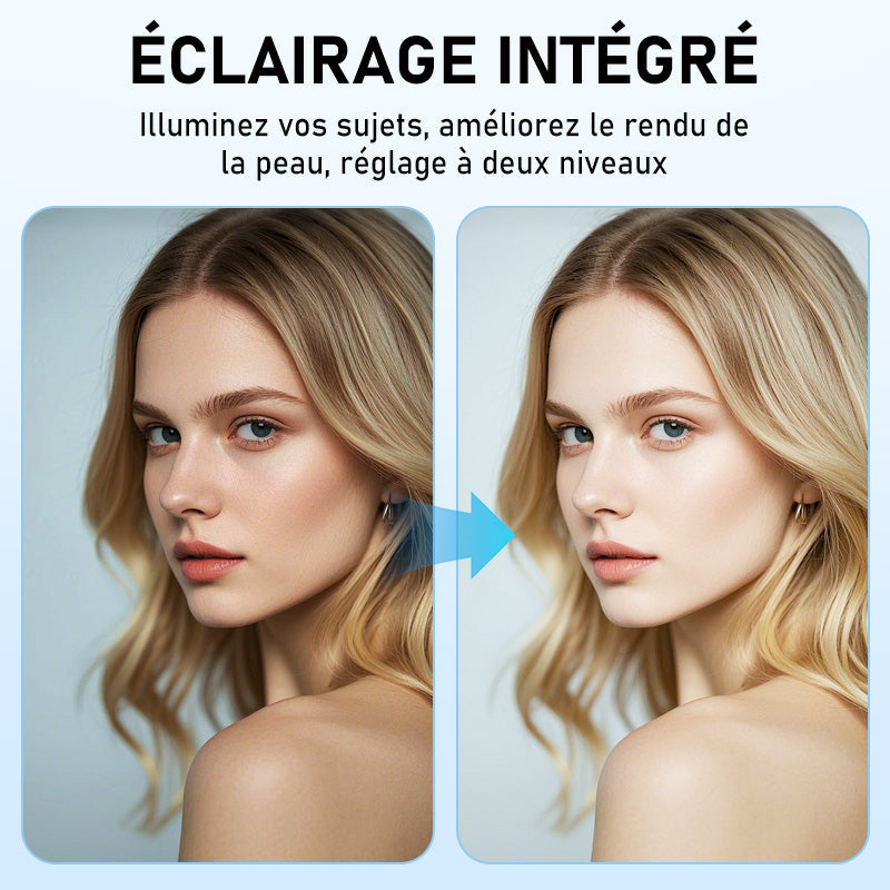 AMÉLIORATION DE L’ÉCLAIRAGE INTÉGRÉE : Éclairez parfaitement vos sujets grâce à un éclairage d'appoint intégrée à niveaux réglables. Idéale pour sublimer les tons de peau, assurer des images claires en faible luminosité ou apporter un éclat professionnel lors de vos diffusions en direct.