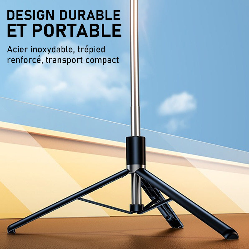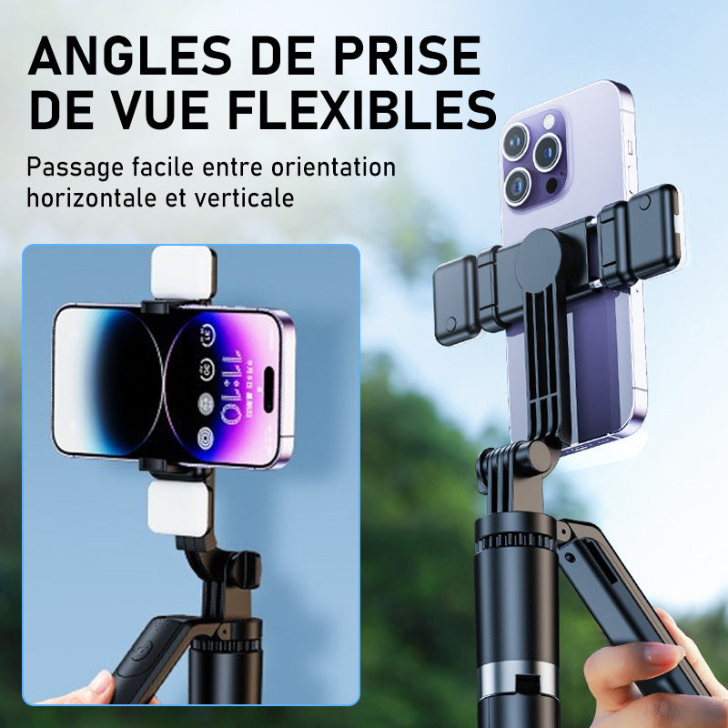 FLEXIBILITÉ DE PRISE DE VUE ADAPTABLE : Profitez d’une polyvalence optimale avec le passage entre l’écran horizontal et vertical. Transformez facilement votre perche à selfie en trépied stable pour toutes les situations. La télécommande Bluetooth offre un contrôle sans fil jusqu’à 10 mètres, parfait pour les contenus en groupe ou en solo.