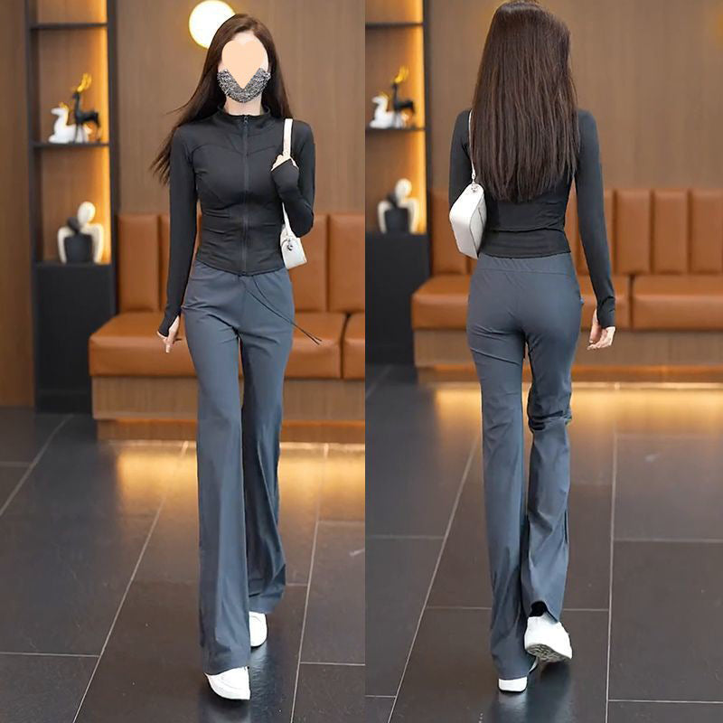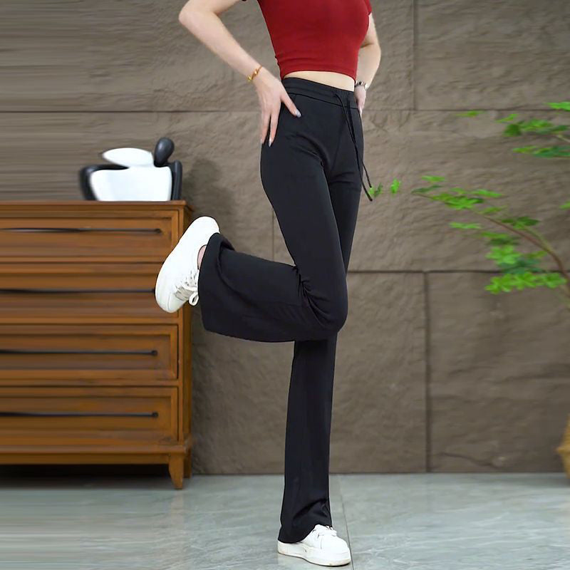 Pantalon d'été décontracté en soie glacée à taille haute pour femmes