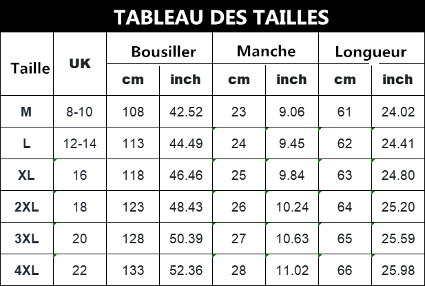 | Taille: | M/L/XL/2XL/3XL/4XL |