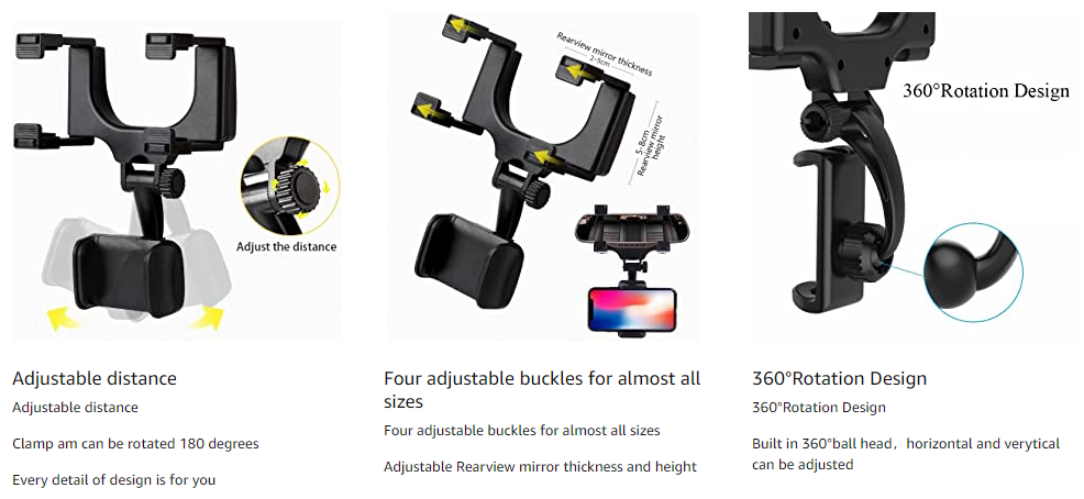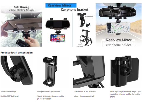 Le support pour téléphone de voiture est équipé d'un bras de serrage à réglage automatique, facile à installer. Situé dans le rétroviseur de la voiture, il peut être complètement fixé sans tomber. -