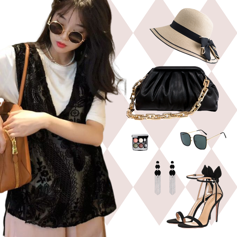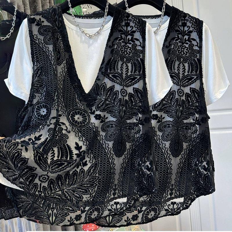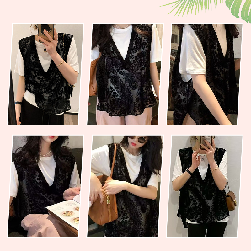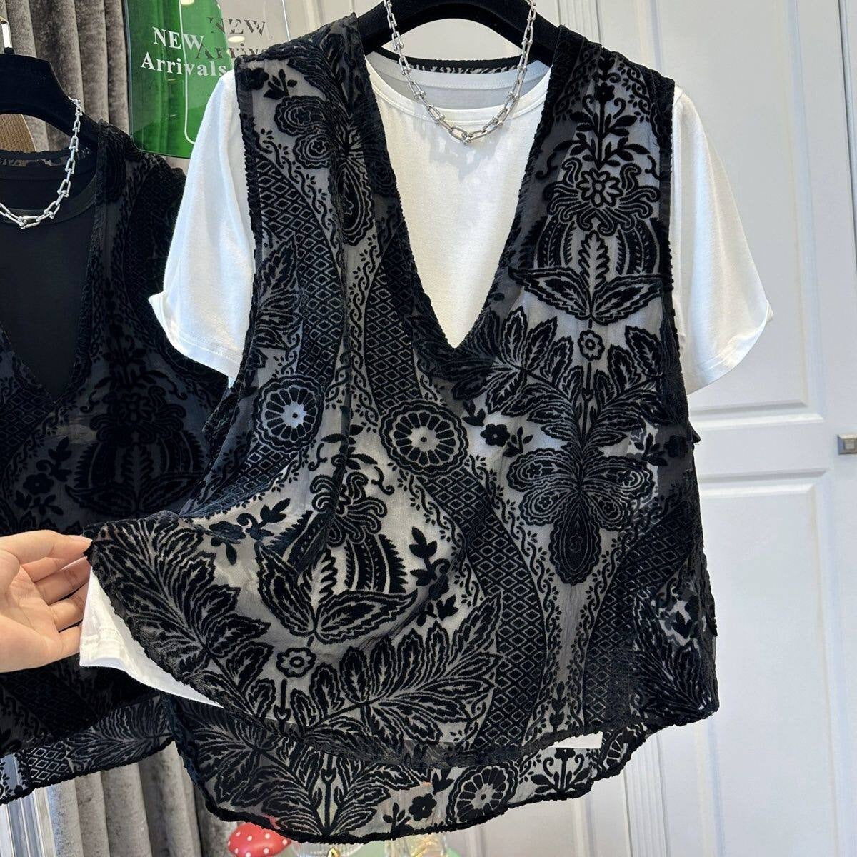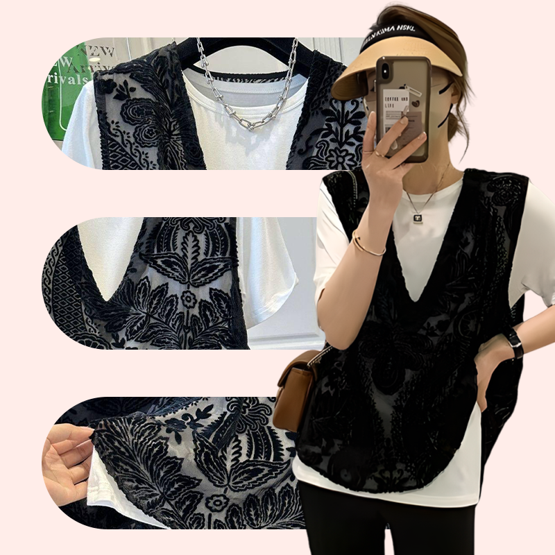 Lieferumfang: 1*Elegantes Damen-Top mit Tanktop aus Spitze im Druckdesign