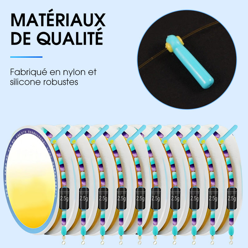 RÉGLAGE PRÉCIS ET RAPIDE DU FLOTTEUR – Grâce à un plomb gradué à noyau souple et un émerillon à grande vitesse, ce fil permet un ajustement rapide du flotteur. Les sièges de flotteur en silicone garantissent une fixation sûre, évitent la perte du flotteur et améliorent l’efficacité de la pêche, idéal pour les pêcheurs compétitifs.