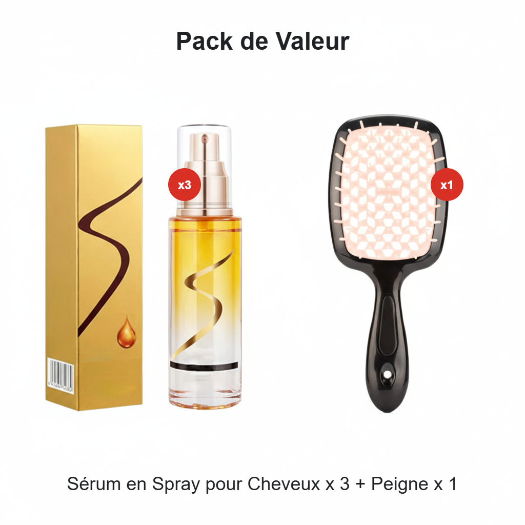 CHEVEUX LISSÉS ET BRILLANTS : Notre sérum capillaire en spray est votre arme secrète contre les frisottis et l'aspect terne.. Il est formulé pour apporter une hydratation et une nutrition intenses, laissant les cheveux irrésistiblement lisses et brillants. Que ses cheveux soient bouclés, lisses ou ondulés, ce sérum mettra en valeur leur beauté naturelle.