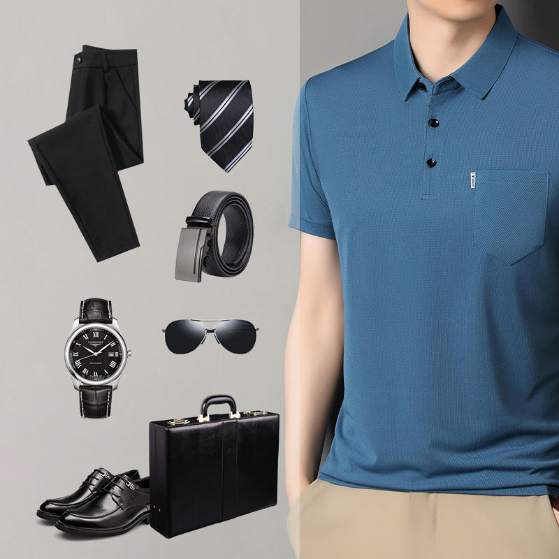 DESIGN DÉCONTRACTÉ D'AFFAIRES INTEMPOREL : Un mélange parfait de professionnalisme et de confort, avec un col classique et des manches courtes pour un look soigné et décontracté.