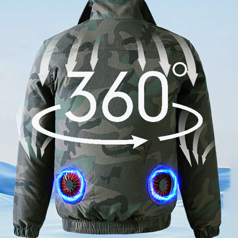 SYSTÈME À DOUBLE VENTILATEUR - Équipée de deux ventilateurs puissants, cette veste innovante fait circuler l'air efficacement. Elle procure une brise rafraîchissante, vous permettant de rester au frais par temps chaud ou lors d'activités de plein air comme la randonnée ou le camping.