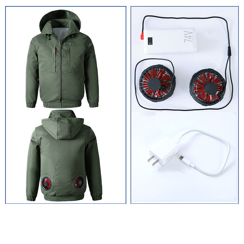 Contenu du paquet : 1 × Veste rafraîchissante rechargeable avec deux ventilateurs, 1 × Batterie, 1 × Chargeur