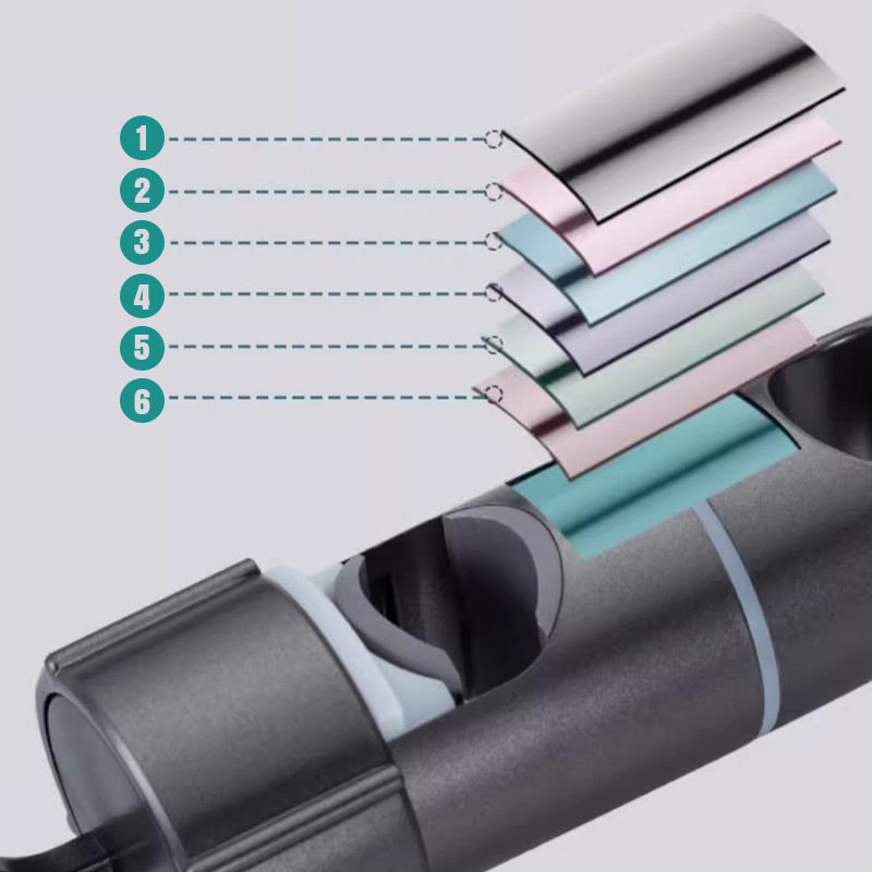 ALIGNEMENT FLEXIBLE : Pivote à 360° pour un positionnement parfait de la douchette. Le support est également facile à retirer, idéal pour le nettoyage ou le rangement. Grâce à sa taille compacte (dimensions : 12 × 4,3 × 3,6 cm), elle s'intègre parfaitement dans toutes les salles de bains.