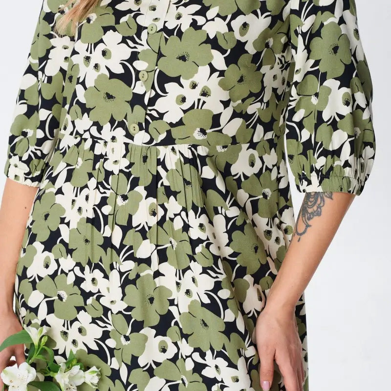 IMPRIMÉ FLORAL ÉLÉGANT : Cette robe arbore un magnifique imprimé floral vert, apportant une touche d'élégance naturelle à votre garde-robe. Le motif délicat est à la fois vibrant et subtil, parfait pour une sortie décontractée ou un événement social. Une pièce polyvalente qui se marie facilement avec des sandales, des baskets ou des talons – un incontournable du printemps et de l’été.